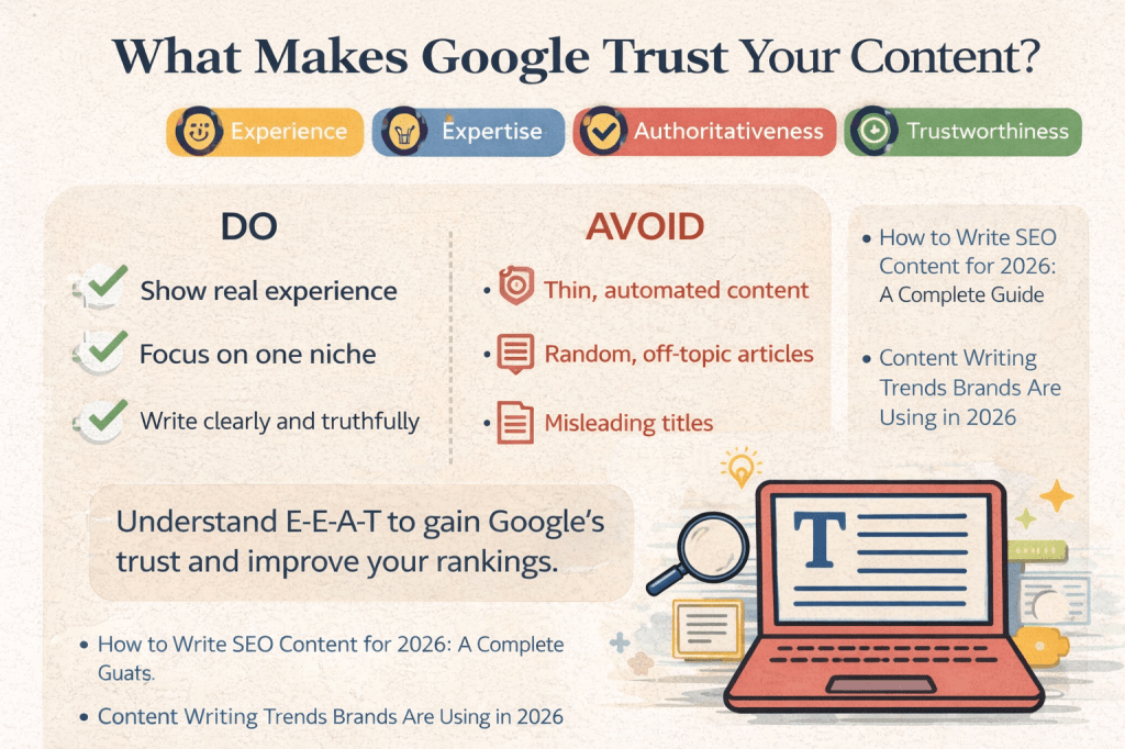 In this article, you’ll learn what makes Google trust your content—and how to apply it practically as a content writer.